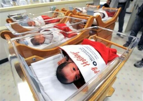 เหล่าทารกที่เกิดที่ Magee-Women's Hospital ของมหาวิทยาลัยศูนย์การแพทย์ Pttsburgh จะได้รับถุงเท้าขนาดยักษ์พร้อมกับหมวกที่ถูกถักขึ้น ซึ่งภาพนี้ได้จากสำนักข่าว ABC News