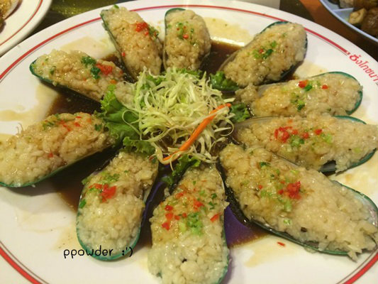 จานที่สาม จานนี้บอกเลยไม่ปลื้มมมมม สำหรับจานนี้เป็นหอยแมลงภู่อบกระเทียม (จำชื่อแน่นอนไม่ได้) กระเทียมเยอะเกิน เยอะไป ชิ้นใหญ่ด้วย ทานไปมีแต่รสกระเทียมค่ะ ไม่มีรสอื่นเลย เซ็งสุด จานนี้สรุปเจ้ไม่ปลื้ม