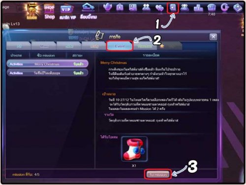 ผู้เล่นสามารถกดรับ Event เพื่อเริ่มภารกิจได้ดังนี้