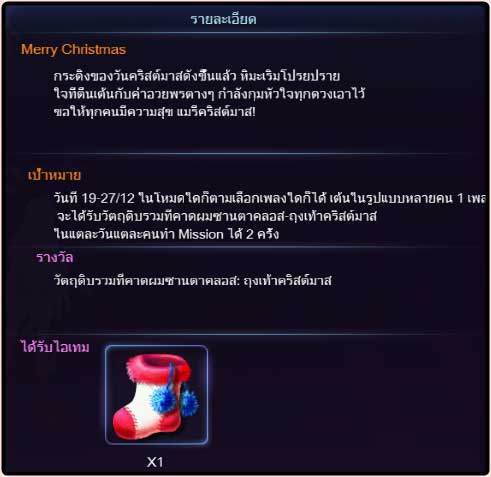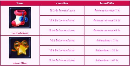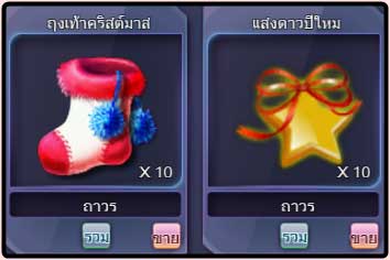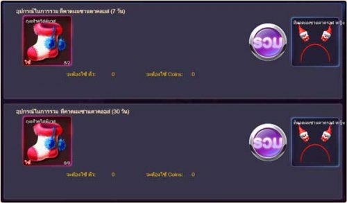 2. ที่ไอเทม ถุงเท้าคริสมาสต์ และ แสงดาวปีใหม่ จะมีปุ่ม "รวม" ผู้เล่นสามารถกดเพื่อเข้าสู่หน้าต่างการรวมไอเทมได้ทันที